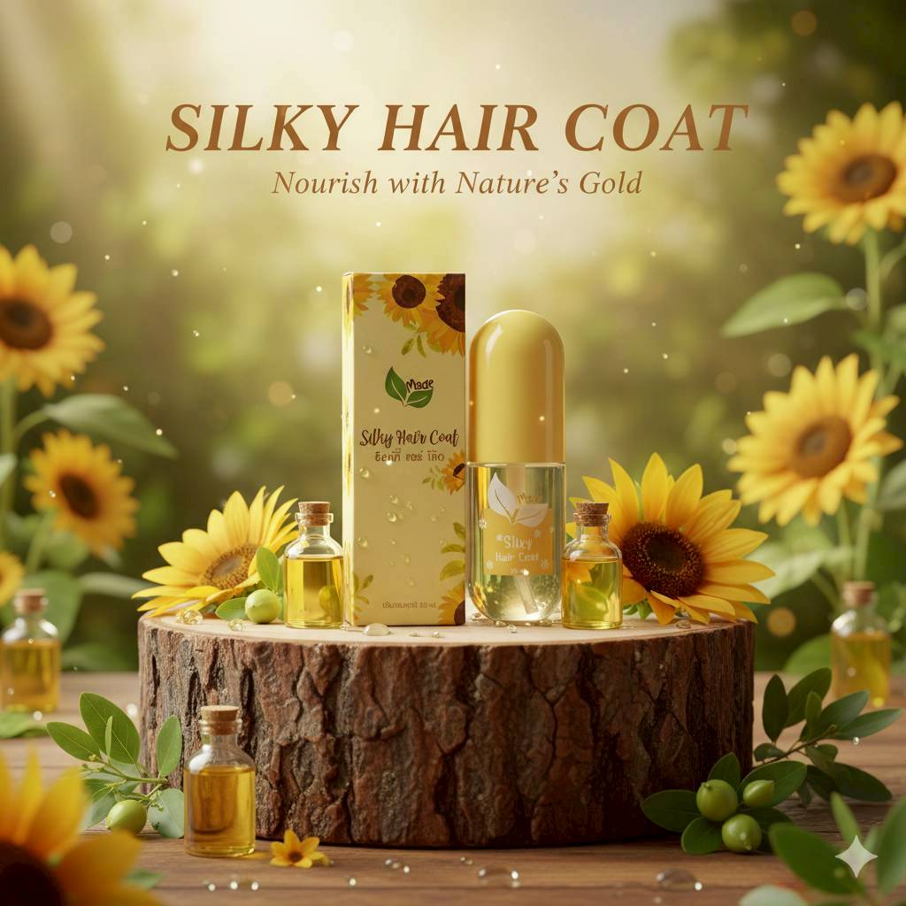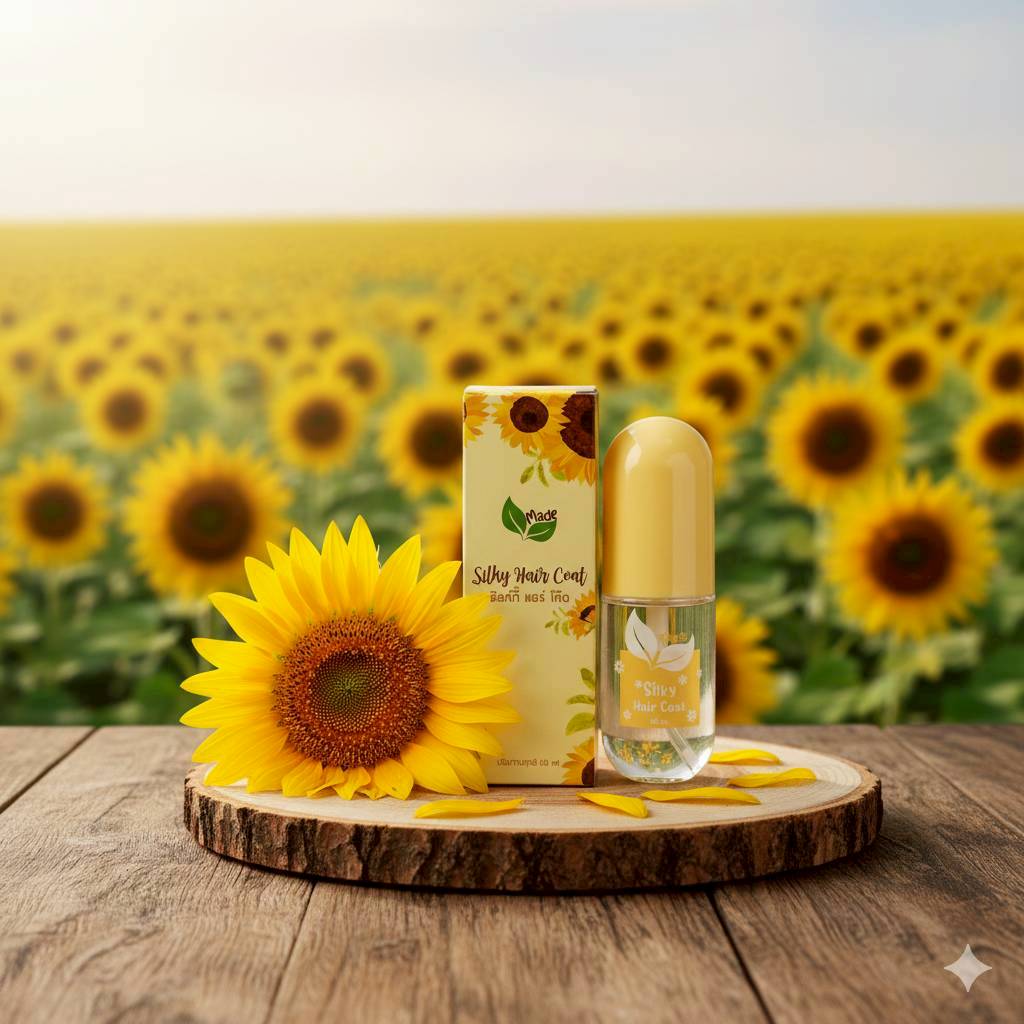 น้ำมันเคลือบบำรุงเส้นผม ด้วยส่วนผสมจากน้ำมันดอกทานตะวัน โจโจ้บาออยล์ ว่านจระเข้ และวิตามินอี ช่วยให้ผมนุ่มลื่นมีน้ำหนัก ปกป้องเส้นผมจากแสงแดด และสารเคมี ทำให้เส้นผมเงางาม นุ่ม น่าสัมผัส พร้อมด้วยกลิ่นหอมสดชื่น ใช้เพียง 2-3 หยด ลูบไล้ให้ทั่วเส้นผมหลังการสระผม
